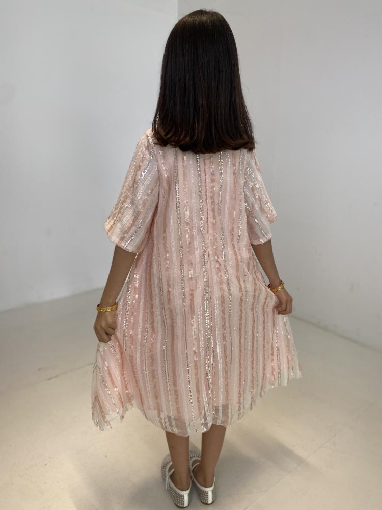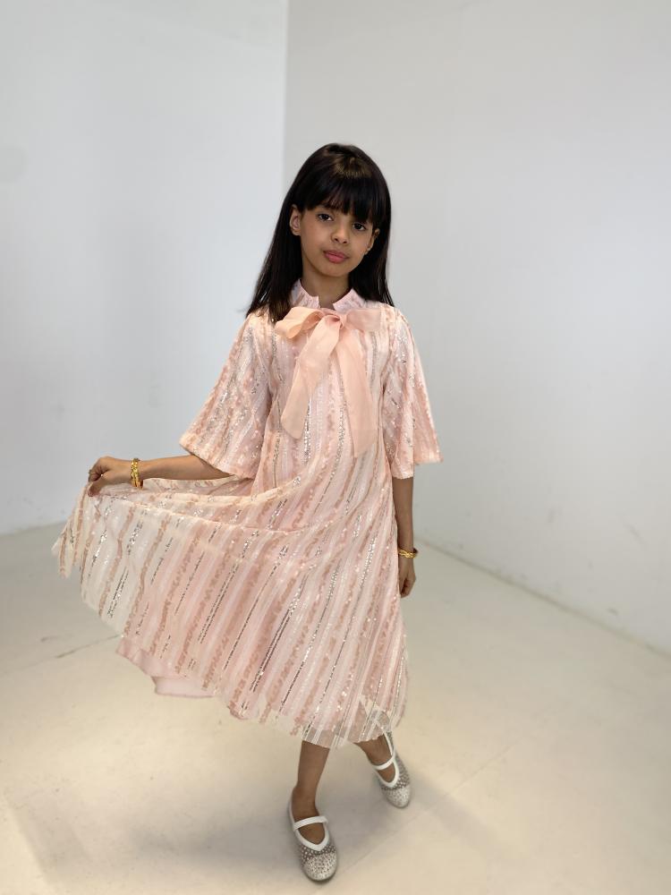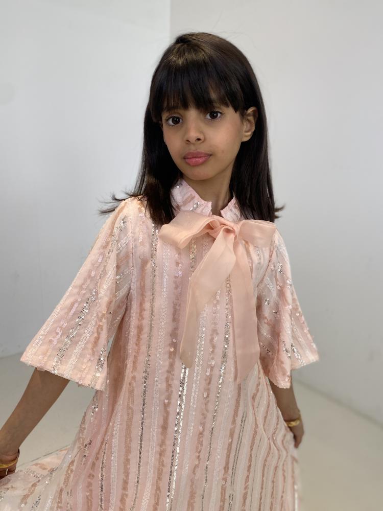 فستان لحمي مع فينكه انيقه على الصدر وترتر على الفستان