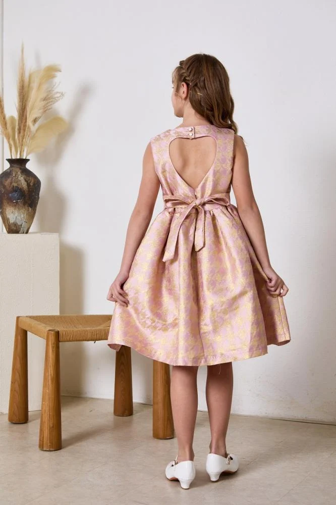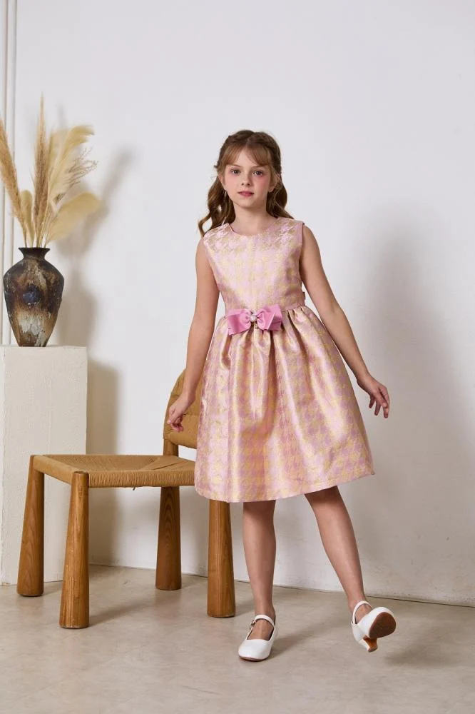 فستان وردي بفيونكة بالخصر العيسائي للاطفال فستان فاخر من العيسائي للأطفال، يتميز بنقشة زهرية لامعة ولمسات أنيقة مع فيونكة أنثوية في الوسط تضيف لمسة جذابة. تصميمه واسع ومريح، ما يجعله خيارًا مثاليًا لإطلالة مميزة في مختلف المناسبات.