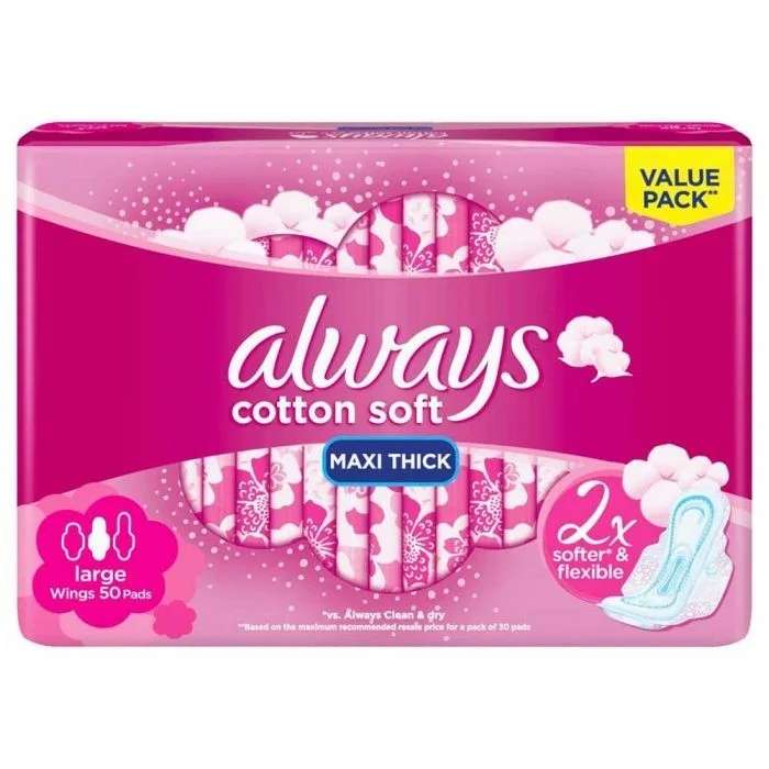 أولويز قطنية ناعمة ، فوط صحية كبيرة ألترا رقيقة مع أجنحة، 50 فوط
