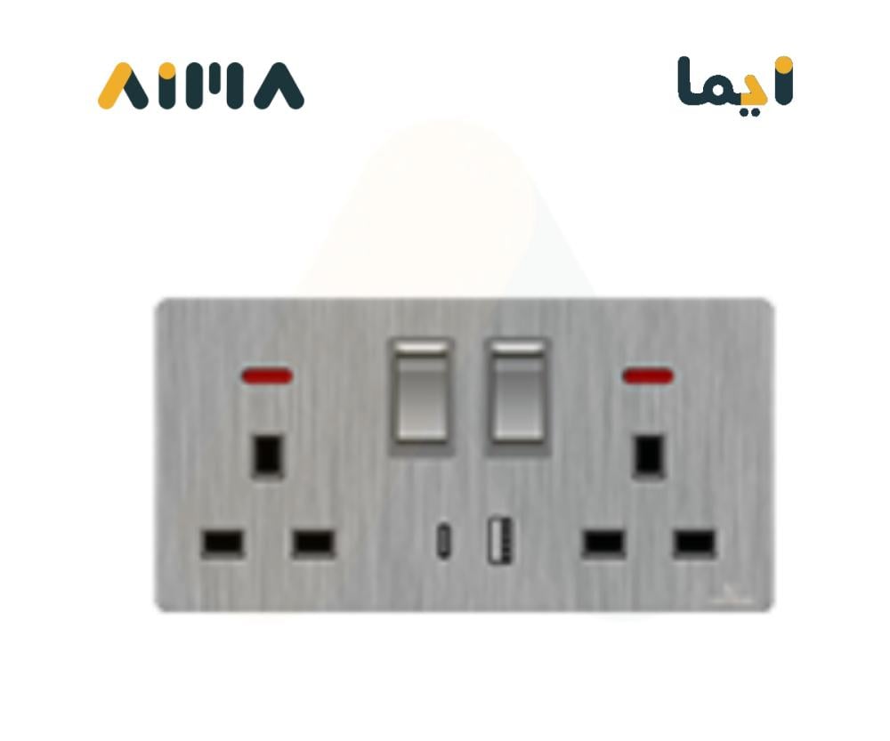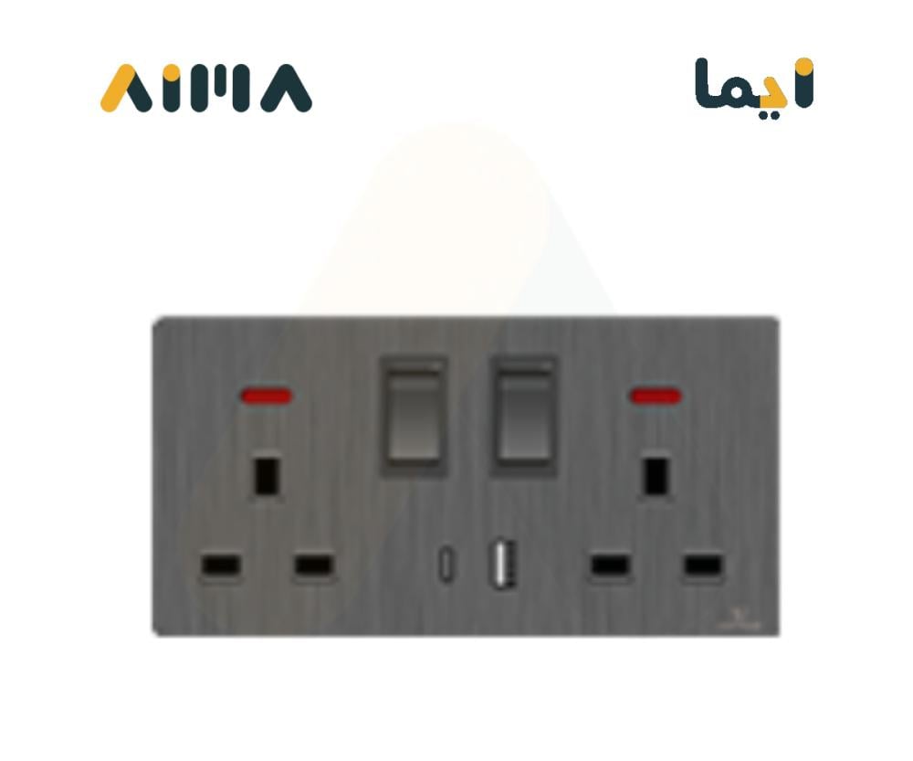 فيكتوري فيش مزدوج مع مفتاح 13 امبير مع لمبة و مخرج USB و Type C