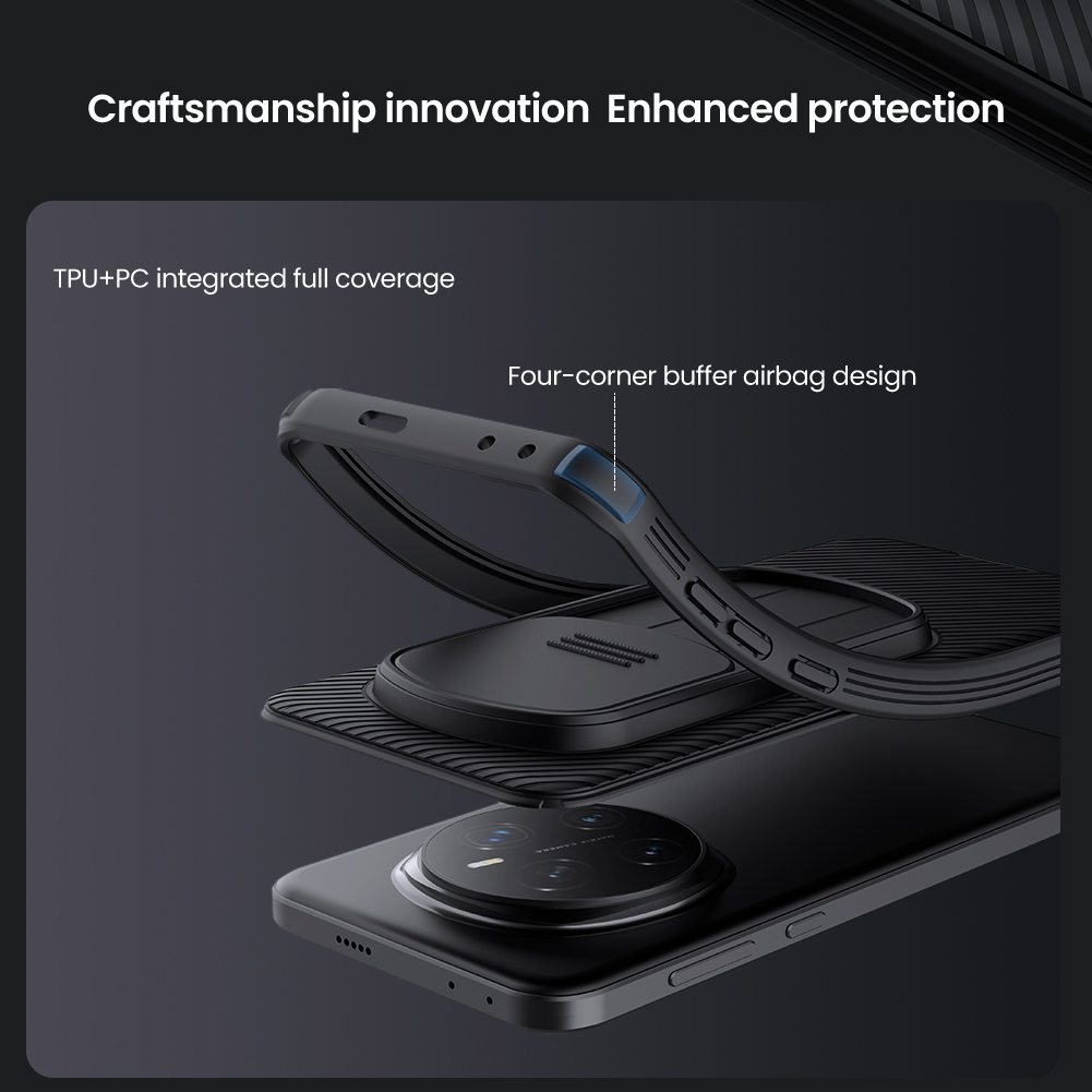 "أسطورة حماية العدسات تضمن لك رؤية واضحة في عام 2019، أطلقنا ميزة 'غطاء العدسة القابل للسحب'. لقد سبقنا الجميع في تطوير شكل جديد من حماية العدسات .5 سنوات من البحث المتخصص لتحصل على غطاء سلس وسهل الاستخدام .يتكامل بسلاسة مع الحافظة"اكتشف الابتكار الحرفي مع حماية مثالية ! استمتع بتغطية كاملة متكاملة من TPU وPC، مع تصميم فريد لوسادة هوائية في الزوايا الأربعة لضمان أقصى درجات الأمان لجهازكم.""حواف ناعمة لإزالة سهلة دون إلحاق الضرر بالجهاز""احصلوا على حماية متميزة مع حواف مرتفعة تحمي الكاميرا والإطار من الخدوش! بارتفاع حوالي 1.0 مم، عن سطح الشاشة والكاميرا مما يوفر أمانًا إضافيًا ويضمن حماية مثالية للجهاز.""اكتشفوا أناقة لا مثيل لها تتجاوز الزمن! مع تصاميم بخطوط كلاسيكية بسيطة، تجمع بين الأصالة والتميز، لتناسب كل الأذواق والمناسبات