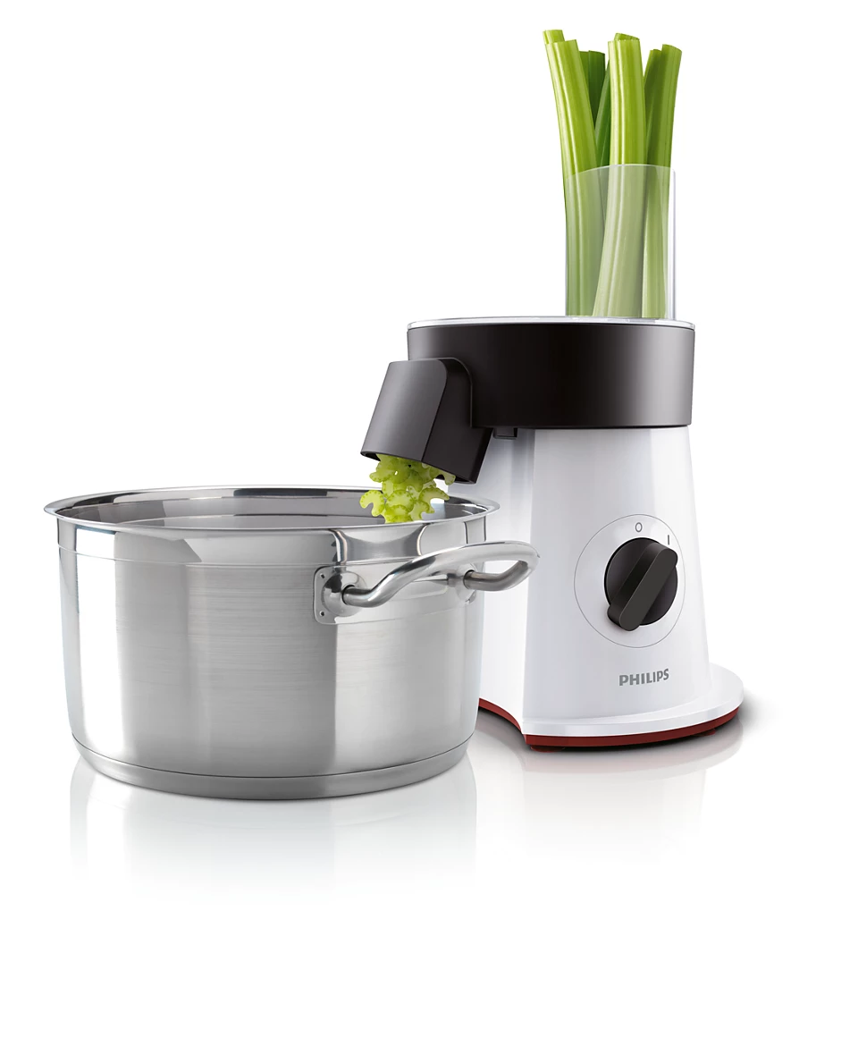 تقدم الاقراص من الفولاذ المقاوم للصدأ التي تتميز بها الة تحضير السلطة من فليبيس نتائج تقطيع مثالية بفضل شفراتها الحادة والمتينة