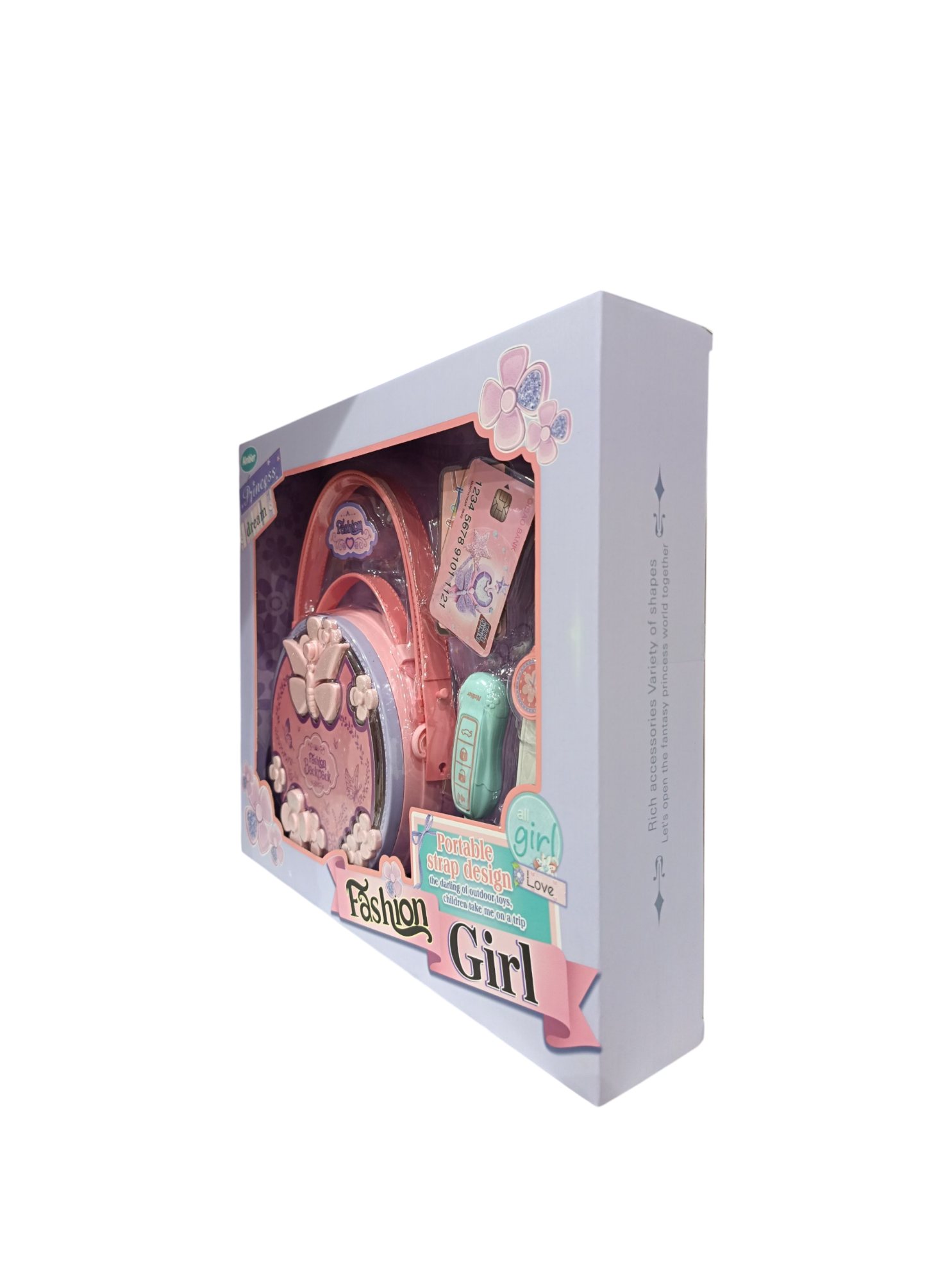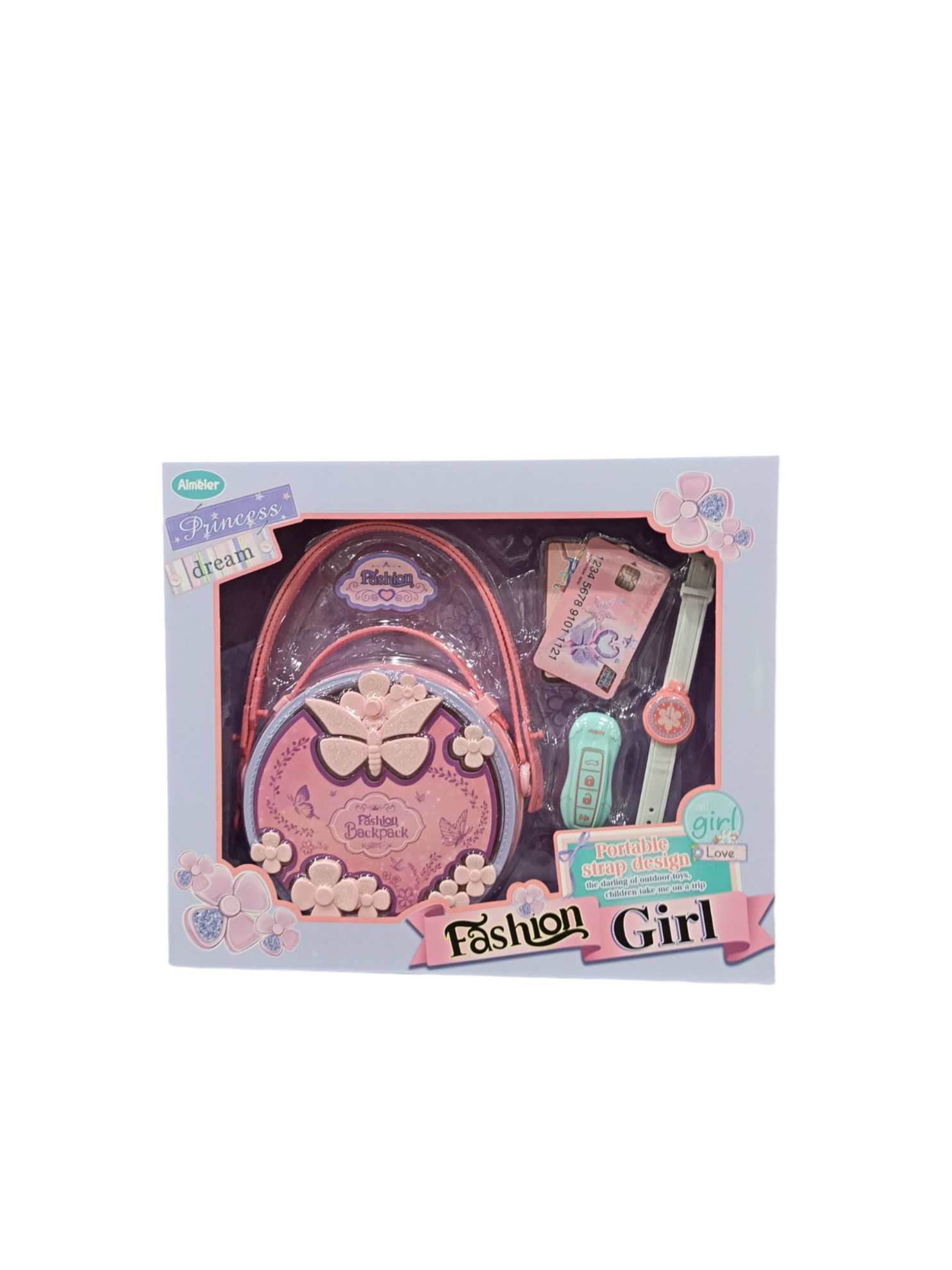 مجموعة ألعاب تجميل للأطفال ، تتميز بحقيبة ظهر أنيقة على شكل فراشة باللون الوردي، وتحتوي على إكسسوارات تجميلية للعب التظاهري
