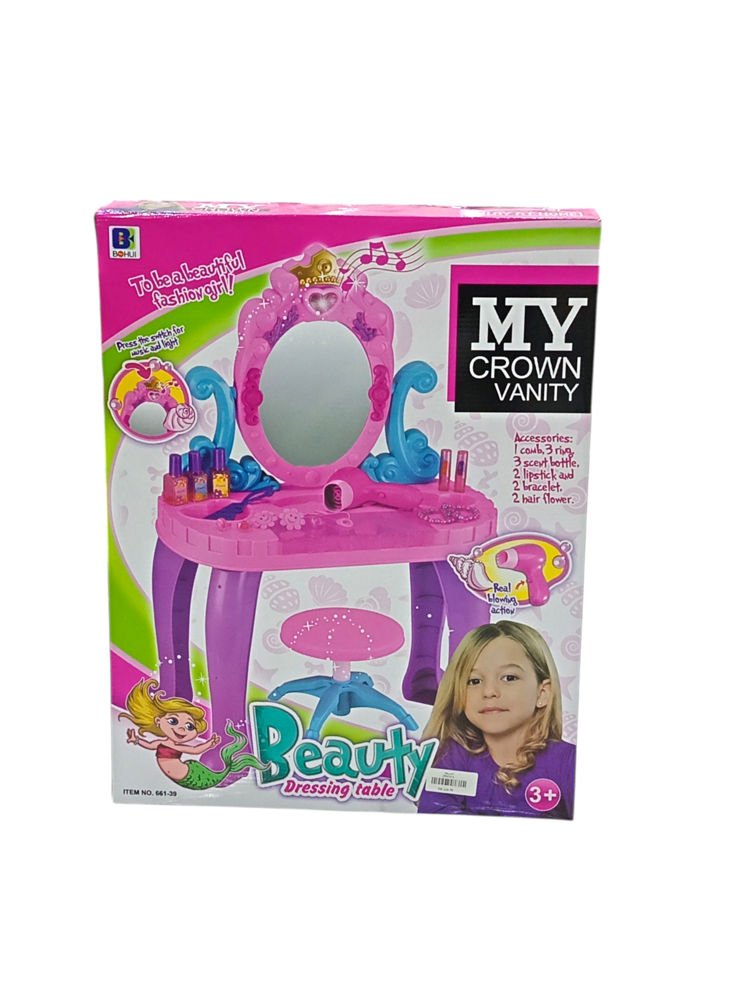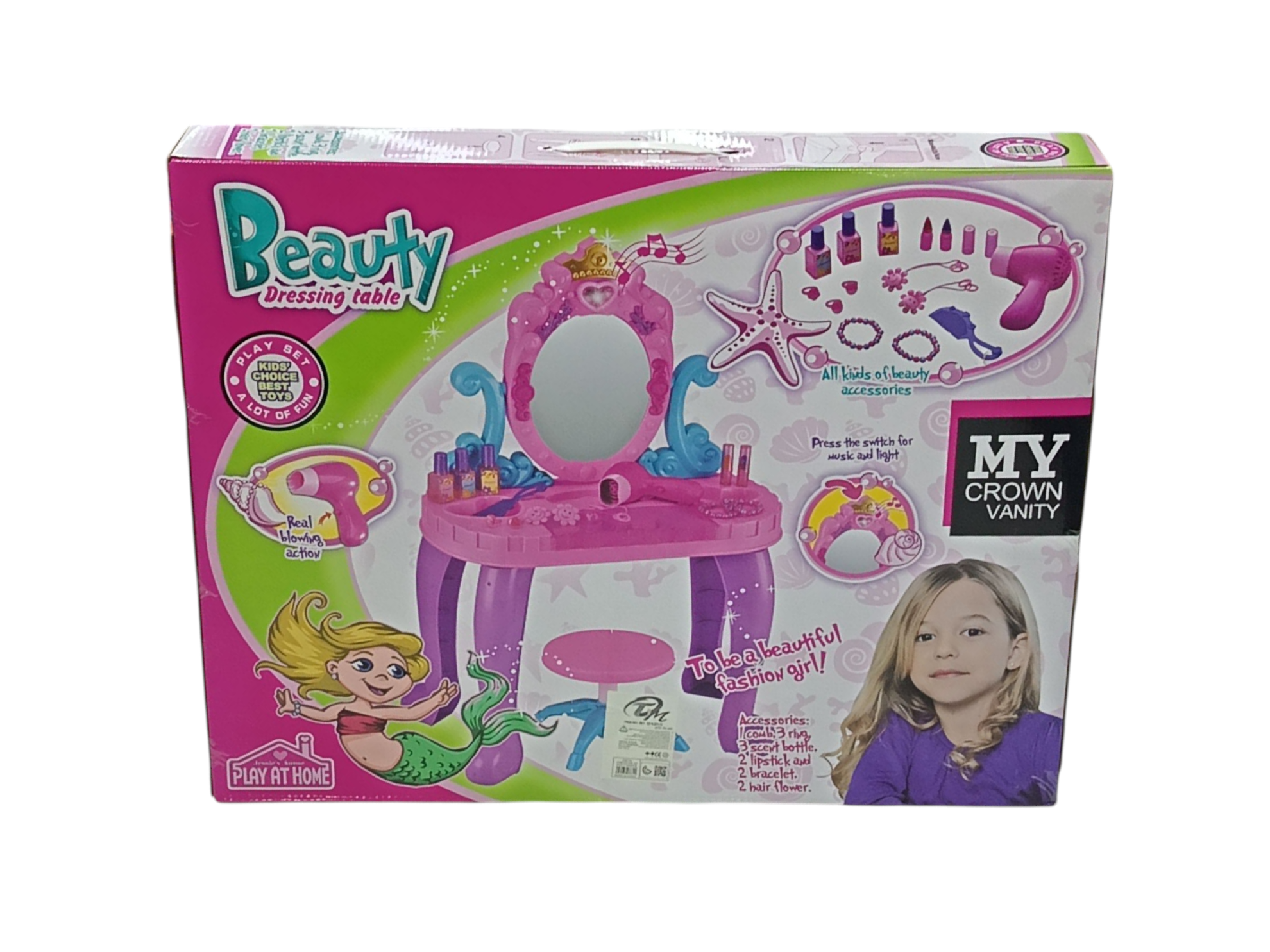 مجموعة ألعاب طاولة تزيين التاج التظاهري مع موسيقى وإضاءة للبنات 44*23*74 سم
