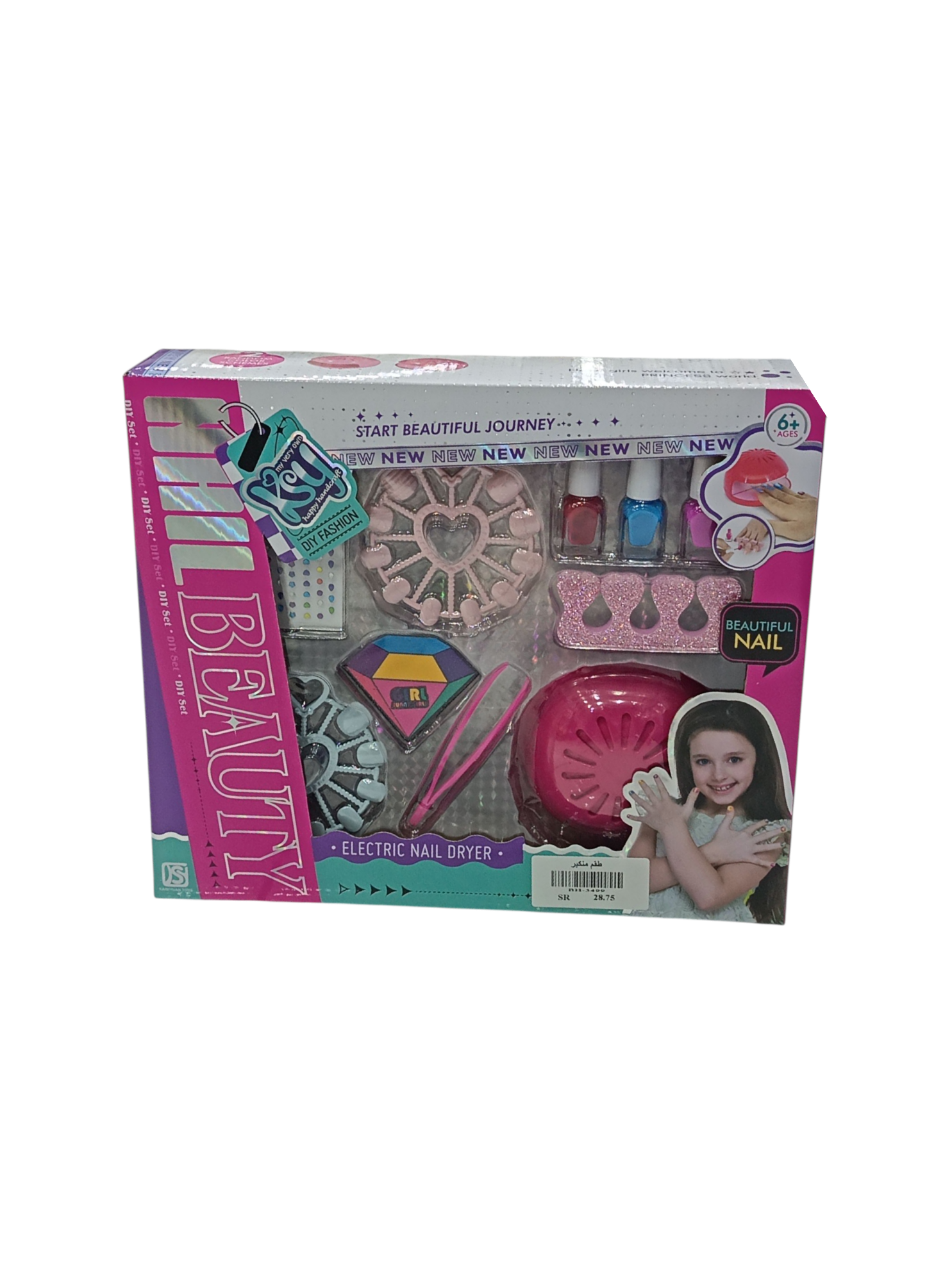 مجموعة تجميل للأظافر مخصصة للأطفال، وتُعرف باسم "ماكينة تلوين أظافر + مونيكير جليتر