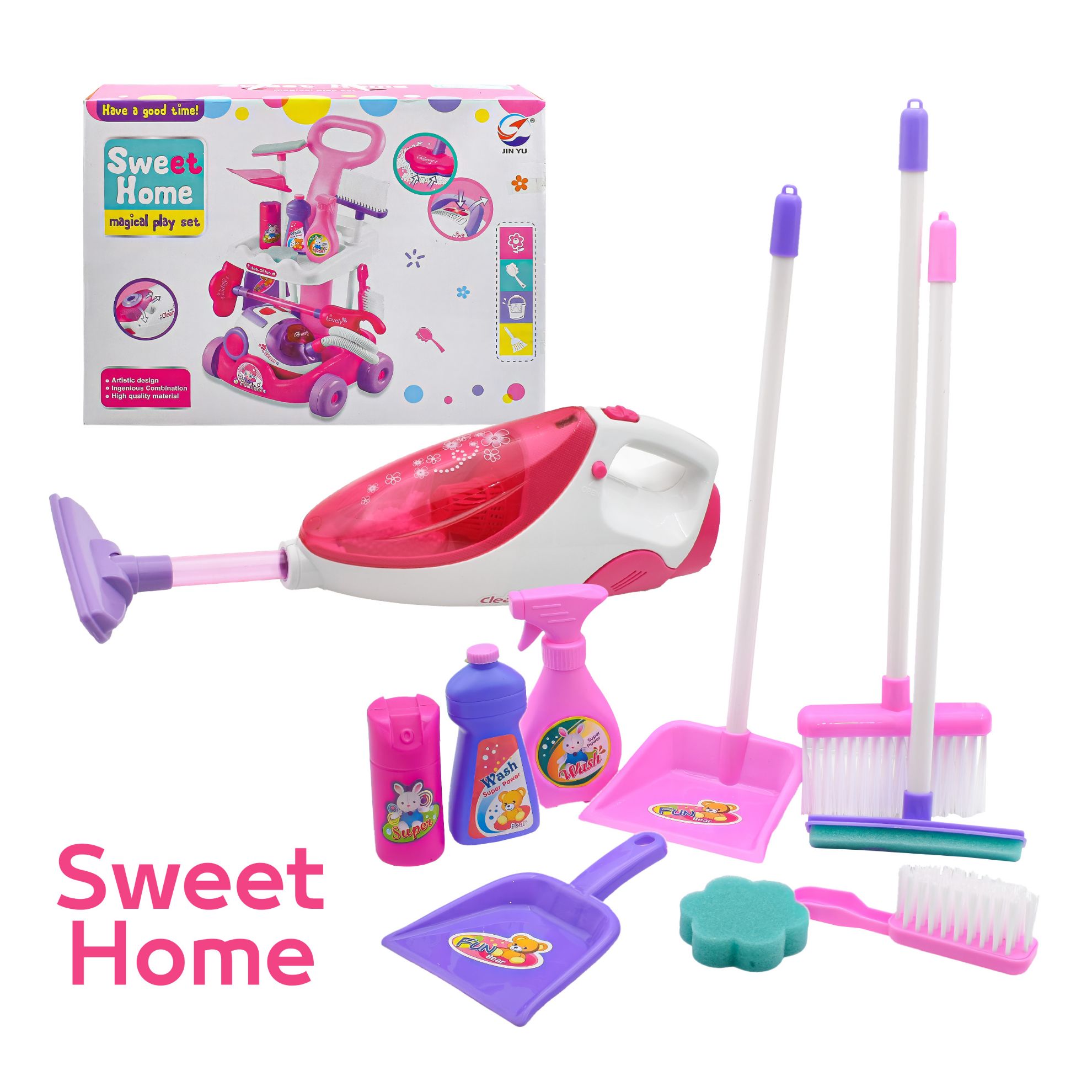 مجموعة ألعاب "سويت هوم" السحرية للتنظيف هي مجموعة ألعاب تظاهرية للأطفال تحاكي أدوات التنظيف المنزلية