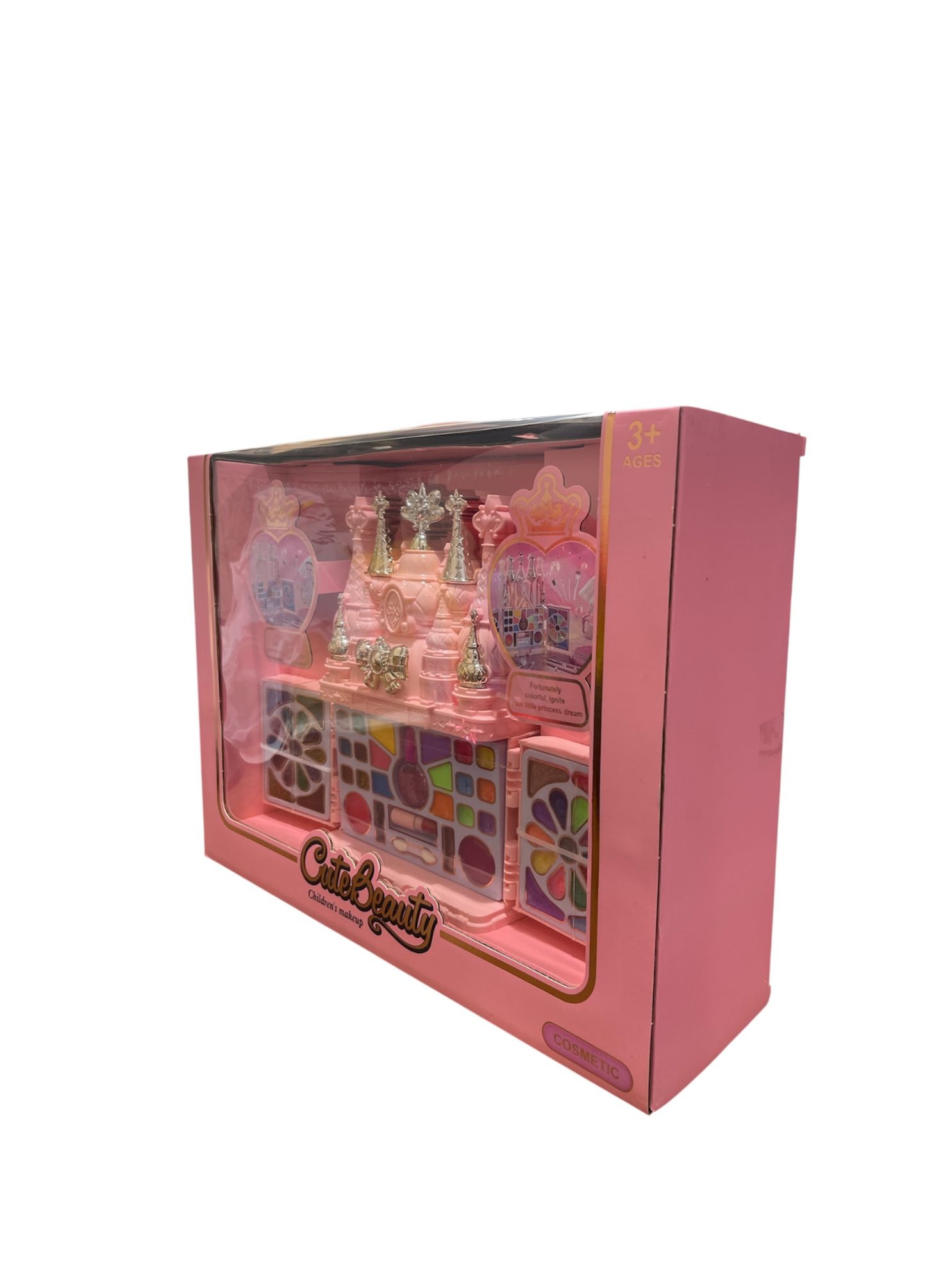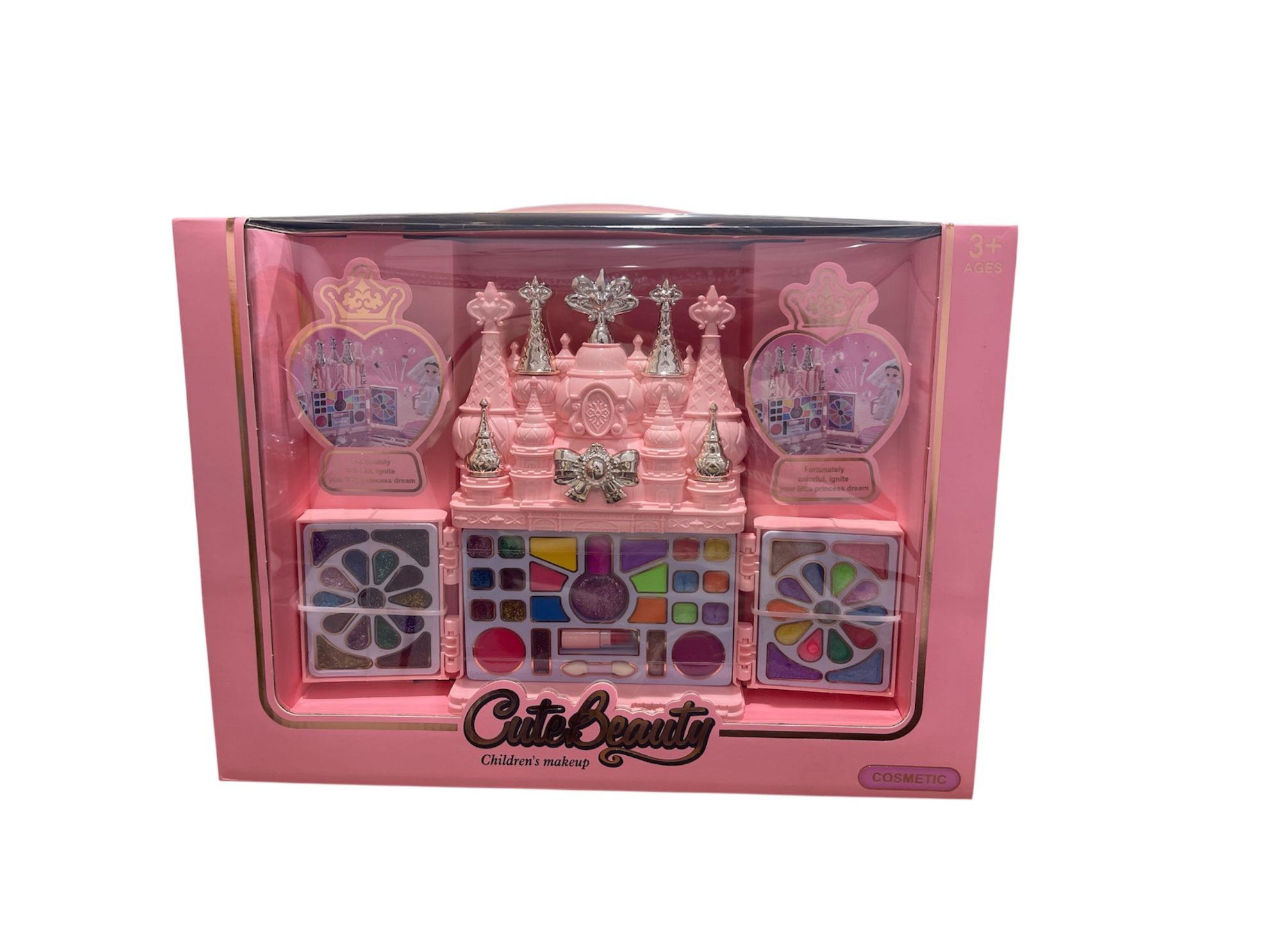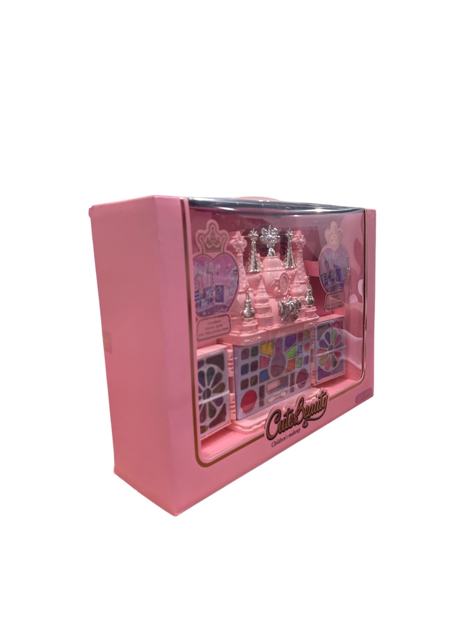 تتميز المجموعة بتصميم على شكل قلعة وردية اللون، وتحتوي على ظلال عيون بألوان مختلفة وتصاميم زهرية، بالإضافة إلى أدوات مكياج أخرى مخصصة للأطفال. يُشار على العبوة إلى أنها مناسبة للأطفال بعمر 3 سنوات فما فوق