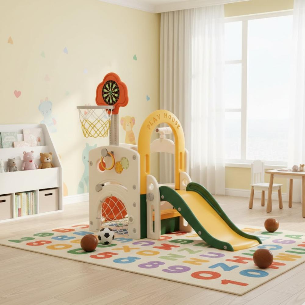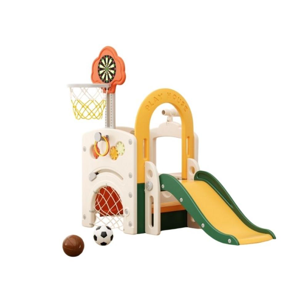 • ملعب متكامل يجمع الزحليقة والسلة والمرمى… لعب وحركة ومتعة في مكان واحد