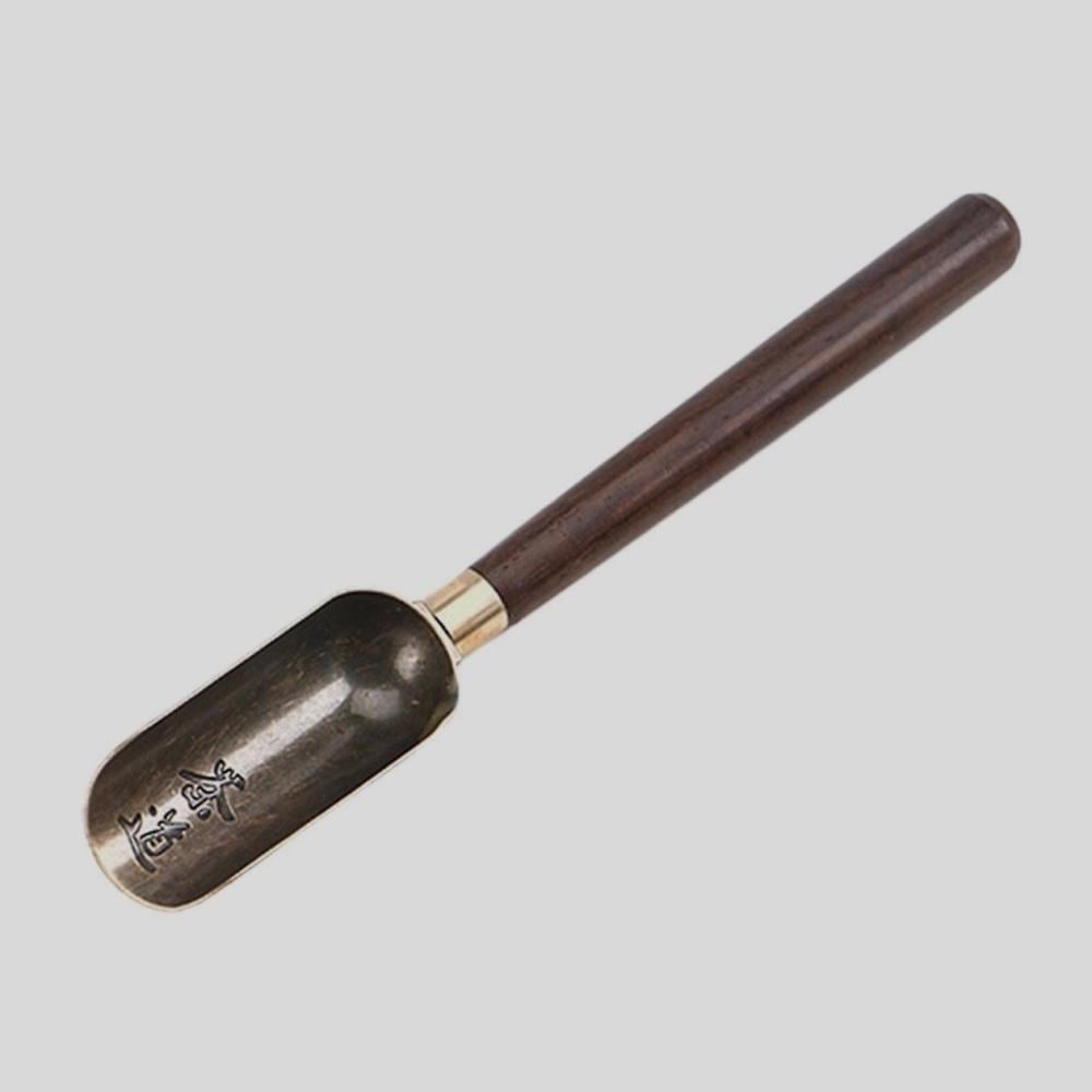 ملعقة قياس الشاي التقليدية.مزيج من خشب الصندل والنحاس العتيق ارتقِ بتجربة تحضير الشاي الخاصة بك مع ملعقة القياس الفاخرة، المصممة خصيصاً لتناسب طقوس تقديم الشاي الراقية. تجمع هذه القطعة بين المتانة الكلاسيكية والتصميم الأنيق، مما يجعلها أداة لا غنى عنها في مجموعتك.لماذا ستحب هذا المنتج؟• خامات فاخرة: مقبض مصنوع من خشب الصندل الداكن عالي الجودة الذي يوفر قبضة مريحة وملمساً طبيعياً دافئاً.• تصميم عتيق: رأس الملعقة مصنوع من النحاس بلون عتيق جذاب، محفور عليه رموز فنية تضفي لمسة من الأصالة الآسيوية.• دقة في القياس: تصميم عميق يسمح لك بغرف كمية مثالية من أوراق الشاي المجففة بكل سهولة ودقة.• تعدد الاستخدامات: مثالية لشاي ويمكن استخدامها أيضاً لقياس القهوة، الأعشاب، أو التوابل.المواصفات الفنية:• الطول الإجمالي: حوالي 18 سم (7.08 إنش) مما يجعلها مناسبة للوصول لعمق علب الشاي.• أبعاد رأس الملعقة: الطول 5 سم (1.9 إنش) والعرض 2.6 سم (1.02 إنش).• طول المقبض الخشبي: 12.5 سم (4.9 إنش) لتوازن مثالي أثناء الاستخدام.• المواد: خشب صندل طبيعي + نحاس عتيق.💡 نصيحة المتجر: للحفاظ على جمال الخشب وبريق المعدن، يُنصح بمسح الملعقة بقطعة قماش جافة بعد كل استخدام وتجنب غسلها في غسالة الأطباق.