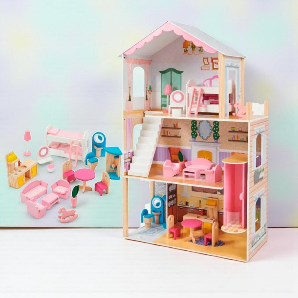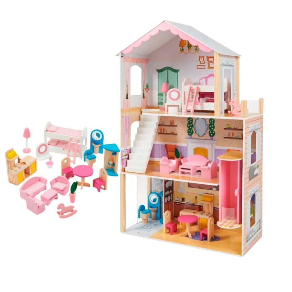 منزل دمى خشبي للأطفال مع أثاث كامل