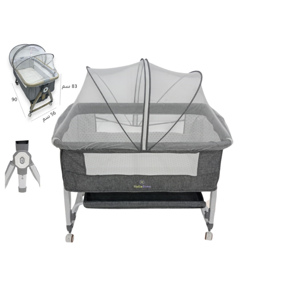 وفّر لطفلك بيئة نوم آمنة ومريحة مع مهد Hello Baby الكلاسيكي . تصميم أنيق وعصري باللون الرمادي الغامق الفاخر، يجمع بين العملية والفخامة، ويضمن لك راحة بالك في كل لحظة .