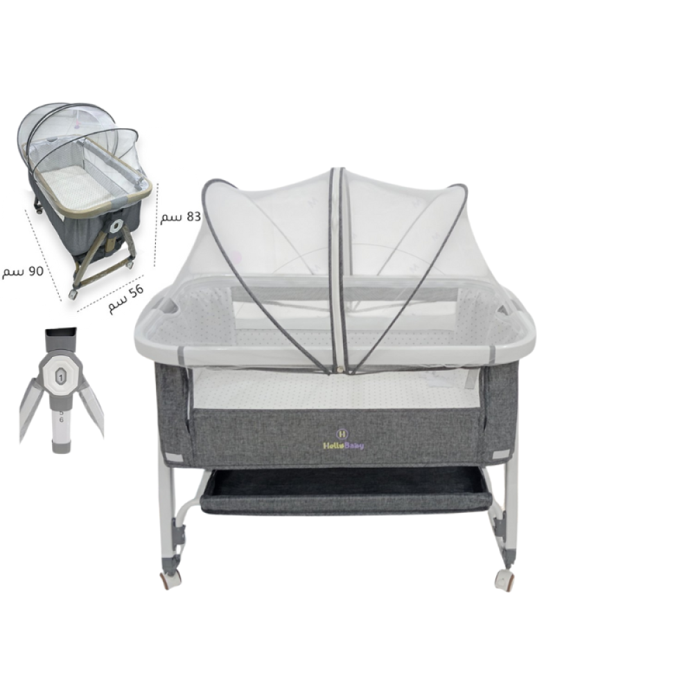 خلِّي صغيرك ينام بأمان وراحة مع مهد Hello Baby المميز بلونه الغامق الفاخر وتصميمه العصري . مصمم ليناسب غرف النوم بكل ذوق وأناقة، ويضمن لطفلك نوم هادئ بفضل الحماية الكاملة والشبك الجانبي للتهوية .