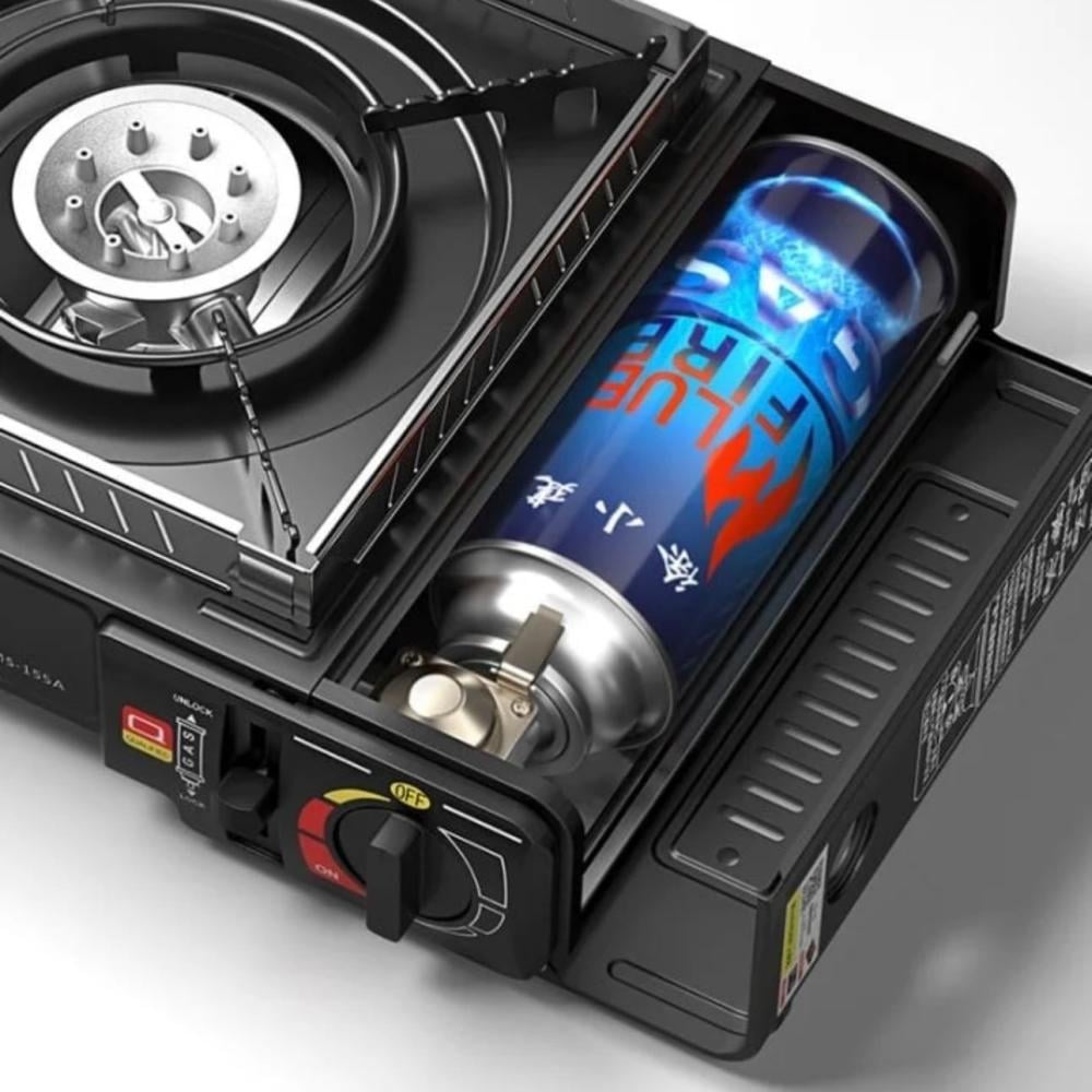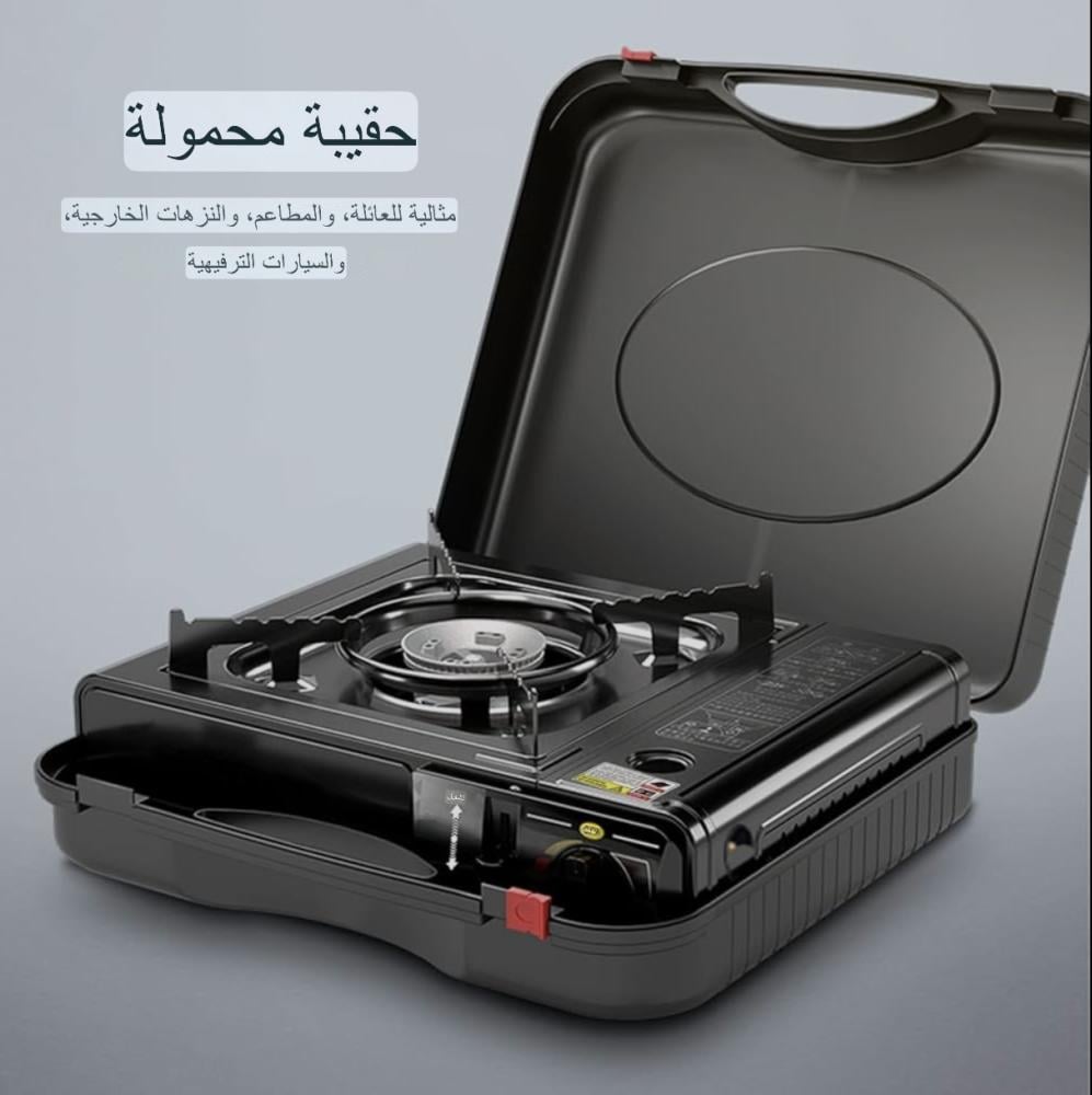 موقد غاز محمول.هذا الموقد المحمول هو أداة مثالية للطهي في الهواء الطلق، حيث يجمع بين الأداء القوي، الأمان، والتصميم العملي. يأتي الموقد بلون أسود أنيق، ويُشغل بواسطة عبوات غاز محمولة تُثبّت داخل حجرة مخصصة، مما يجعله حلًا لاسلكيًا ومناسبًا تمامًا للرحلات والتخييم.المواصفات الرئيسية * النوع: موقد غاز محمول. * التصميم: تصميم مدمج وخفيف الوزن بلون أسود، مزود بأرجل ثابتة لمنع الانزلاق. * الأبعاد: الطول 34 سم، العرض 28 سم، والارتفاع 9.5 سم. * مصدر الطاقة: يعمل بعبوات غاز محمولة تُثبت داخل الموقد بشكل آمن.الميزات والخصائص * سهولة الاستخدام: يتميز بنظام إشعال ذاتي (Piezo Ignition)، مما يلغي الحاجة إلى استخدام أعواد الثقاب أو الولاعات. * تحكم دقيق: يحتوي على قرص دوار للتحكم في شدة اللهب، مما يتيح لك تعديل درجة الحرارة بسهولة لتناسب مختلف أنواع الطهي، من الغلي السريع إلى التسخين الهادئ. * أمان فائق: * مزود بآلية قفل/فتح لضمان تثبيت عبوة الغاز بشكل آمن ومنع تسرب الغاز. * يحتوي على مفتاح أمان لقطع تدفق الغاز عند الضرورة، مما يزيد من مستوى الأمان أثناء الاستخدام. * كفاءة في الأداء: مصمم ليقدم لهبًا أزرق نقيًا وقويًا، مما يدل على احتراق كامل للغاز وكفاءة عالية في استهلاك الوقود. * متعدد الاستخدامات: مناسب للاستخدام في الأماكن المغلقة والمفتوحة، سواء في التخييم، رحلات الصيد، الحديقة، أو في المنزل. * ملحقات: يأتي مع حقيبة حمل صلبة باللون الأسود، مصممة خصيصًا لحماية الموقد من الصدمات وتسهيل نقله وتخزينه.