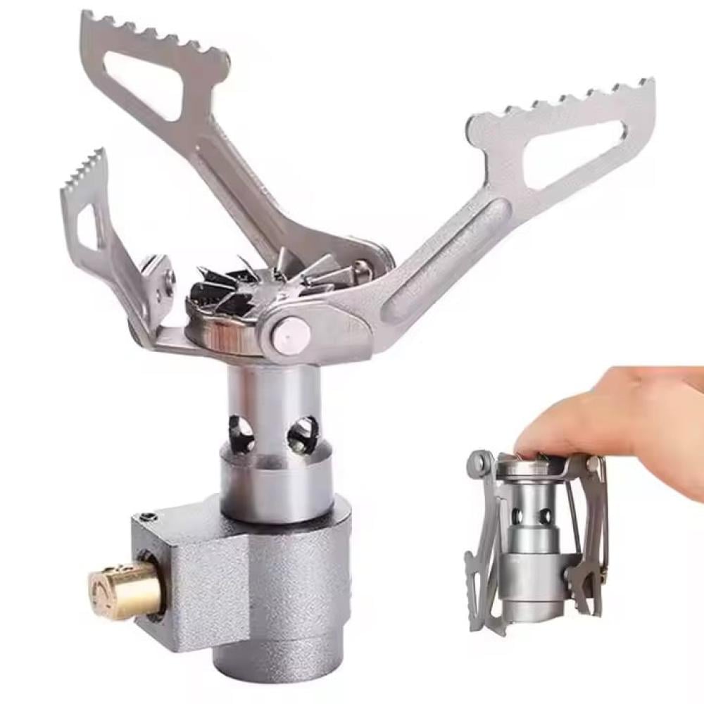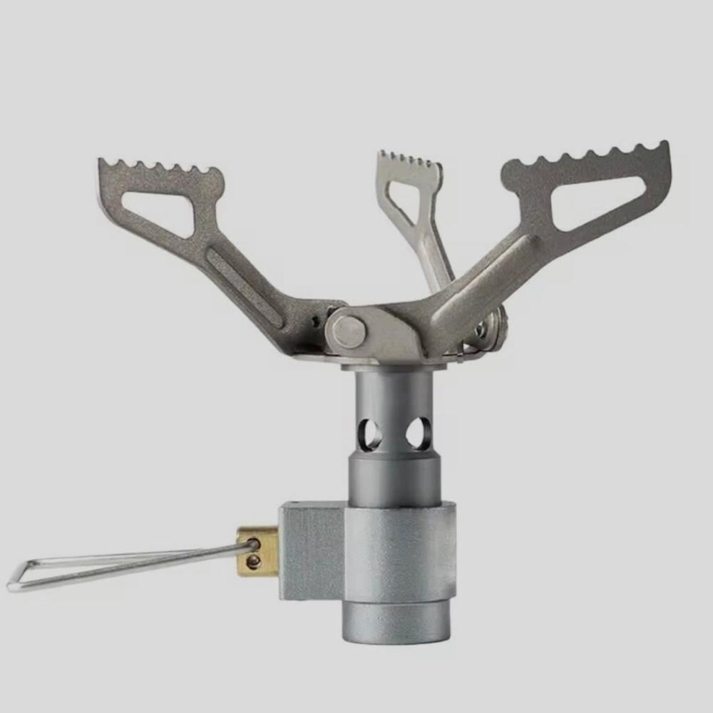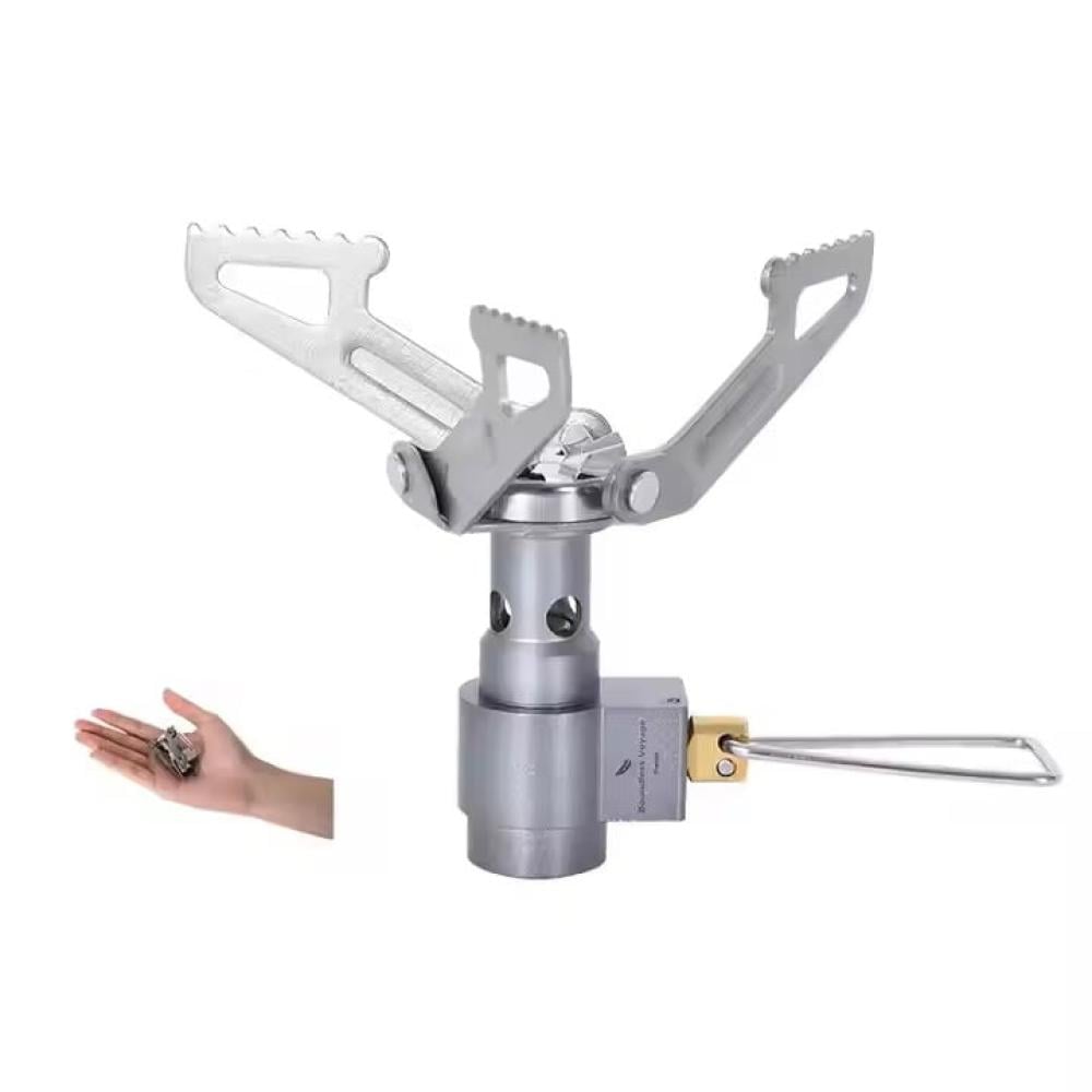 موقد غاز تتانيوم 3000tالميزات الرئيسية:1. تصميم مدمج وقابل للطي: يتميز الموقد بوزنه الخفيف وحجمه الصغير للغاية عند طي الأذرع الثلاثة الحاملة للأواني، مما يجعله سهل الحمل والتخزين في حقيبة الظهر، وحجمه بحجم كف اليد.2. هيكل متين: مصنوع من معدن خفيف الوزن التيتانيوم باللون الفضي الرمادي، مما يضمن المتانة ومقاومة درجات الحرارة العالية.3. حوامل أواني مسننة: يحتوي على ثلاثة أذرع داعمة قابلة للطي، تتميز بحواف مسننة لمنع انزلاق الأواني أثناء الطهي.4. صمام تحكم: يشتمل على صمام نحاسي ومقبض سلكي (أو رافعة) لضبط شدة اللهب والتحكم في تدفق الغاز بدقة.5. اتصال بعبوة الغاز: الجزء االسفلي مصمم ليتصل مباشرة بعبوة غاز.6. توفير حقيبة حمل: يأتي مع حقيبة تخزين صغيرة من القماش بلون أخضر، مما يزيد من سهولة حمله وحمايته.باختصار: إنه موقد تخييم مثالي لمن يبحثون عن حل فعال وخفيف الوزن لطهي الطعام وتسخين المشروبات في الهواء الطلق.