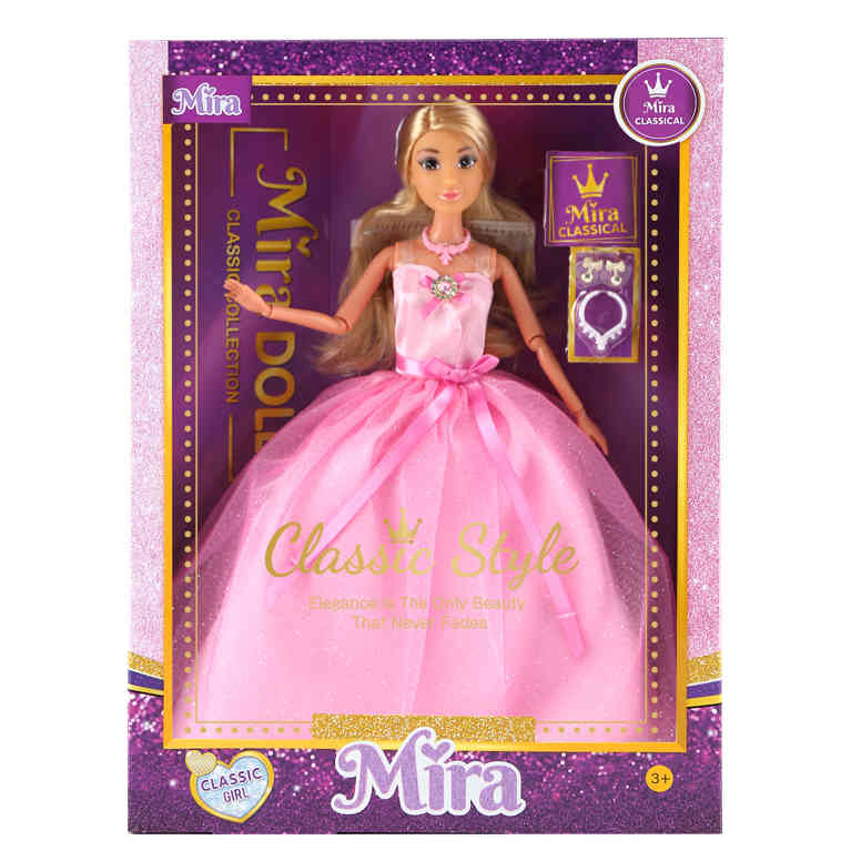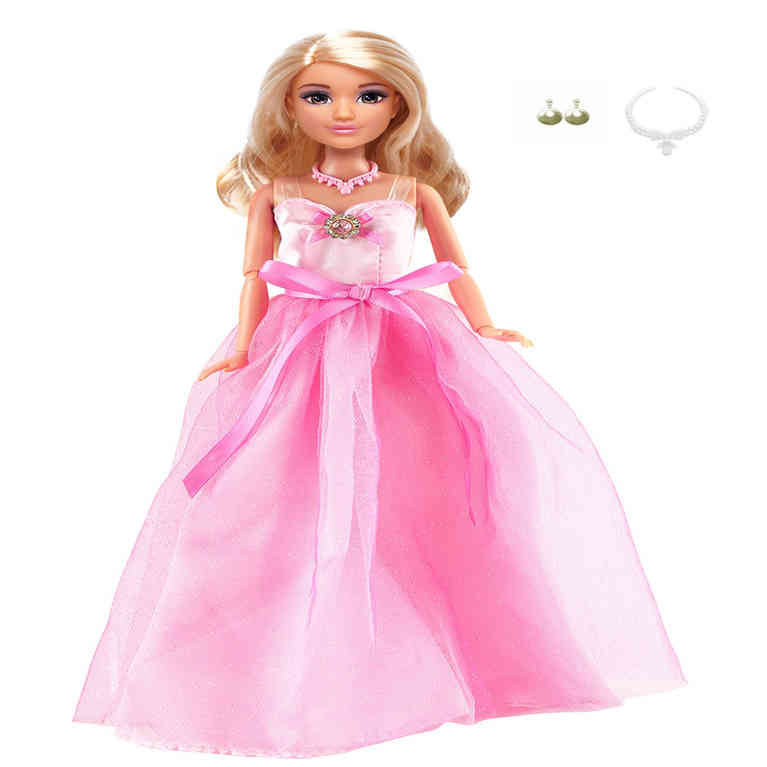 يبلغ ارتفاع الدمية 11.5 بوصة، مما يجعلها بحجم مثالي للعب والتعامل السهل. تتميز بطابع أميرة ساحر تتضمن فستان سهرة وردي كامل. تأتي مع مجموعة متنوعة من الملحقات مثل القلادة والحذاء وحلقة الأذن لإكمال مظهر الأميرة الكلاسيكي. مصنوعة من البلاستيك المتين مع