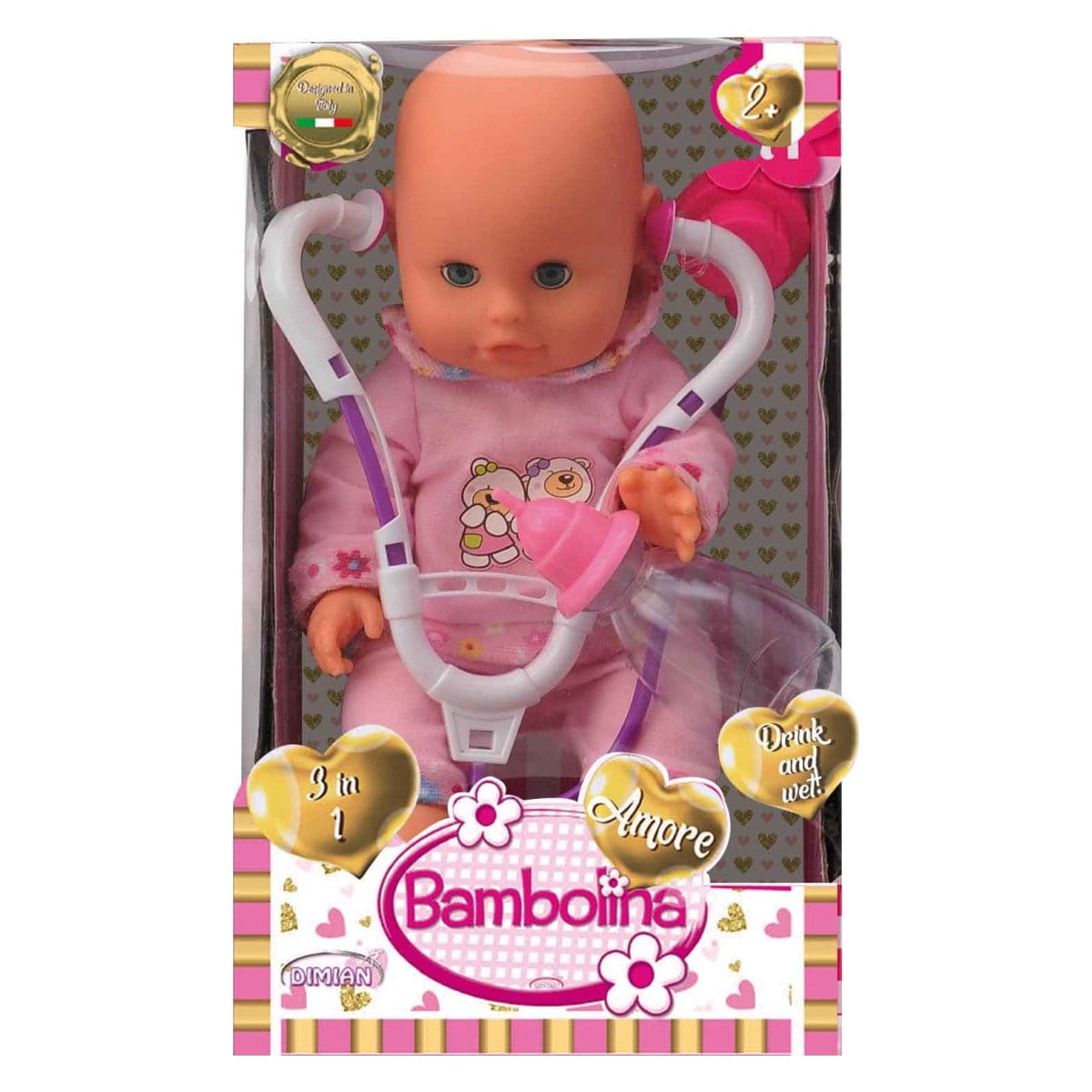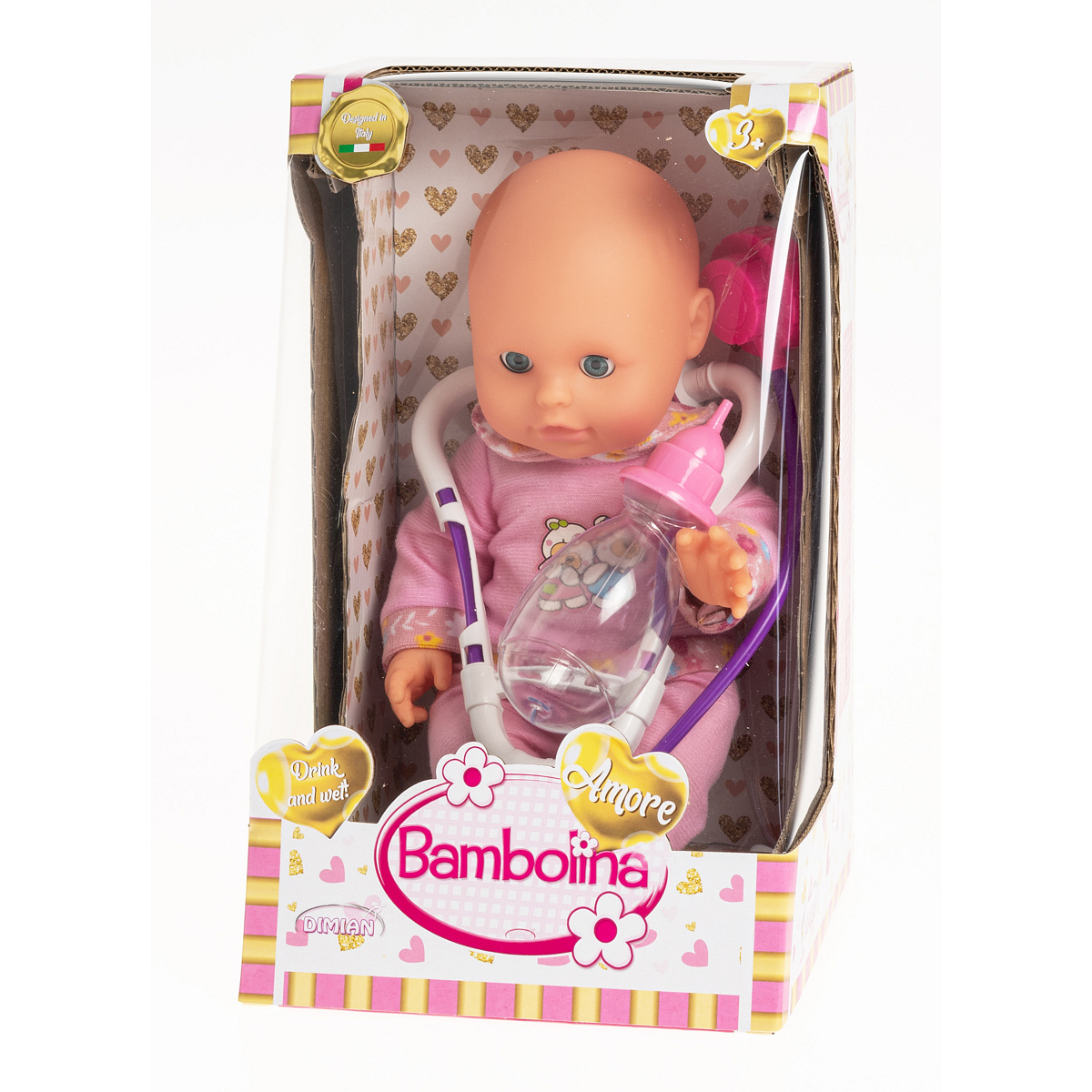 هذه دمية بامبولينا أموري "Drink N Wet" مع سماعة طبيب.