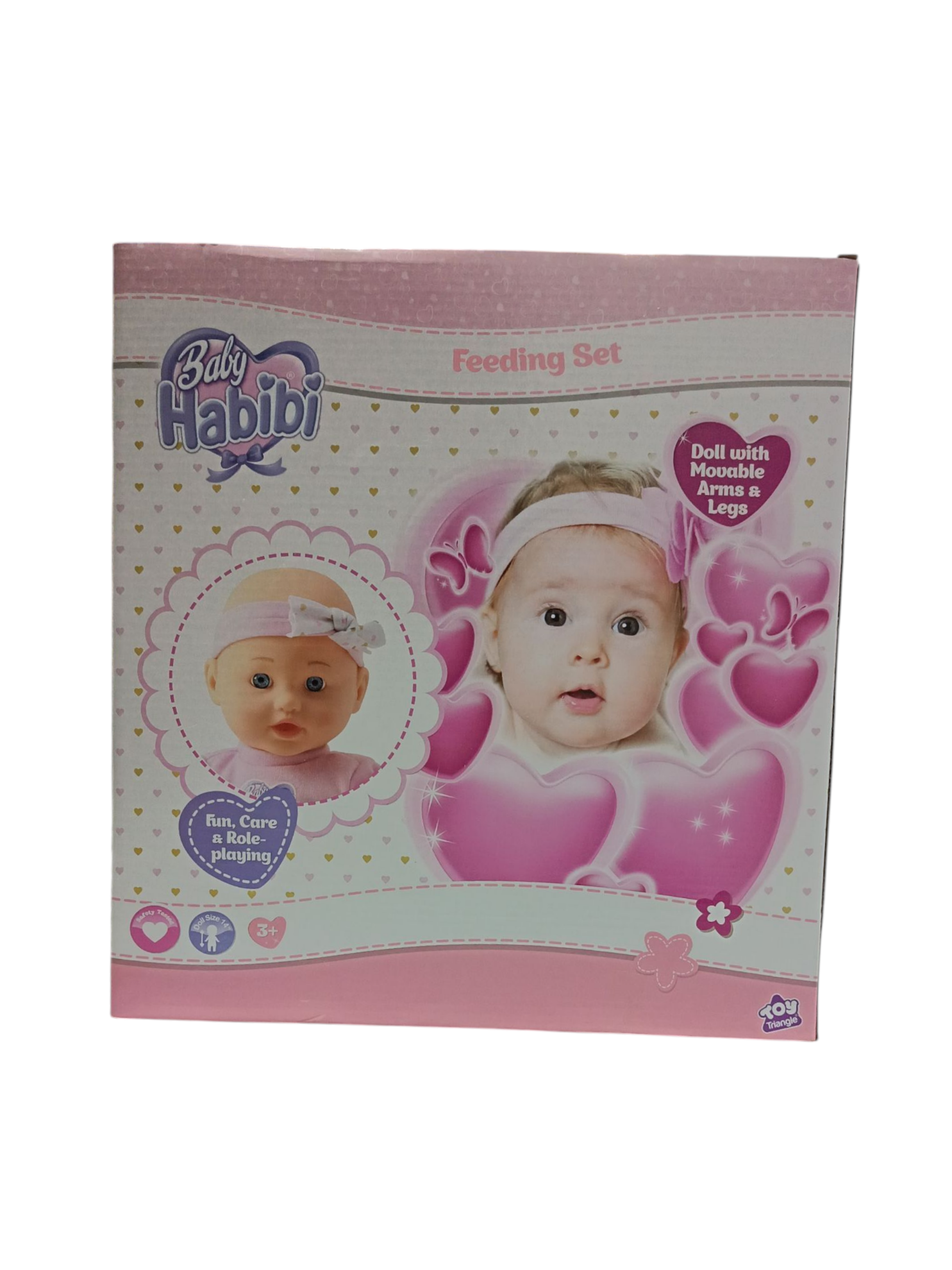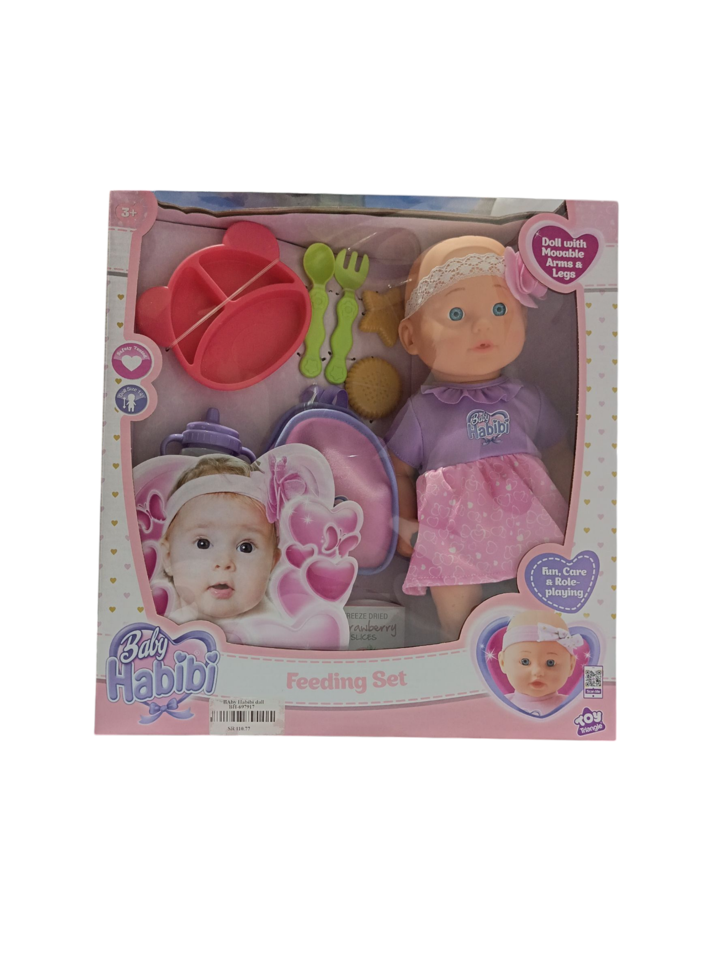 هذه دمية "بيبي حبيبي" مع مجموعة إطعام، مصممة لتجربة لعب واقعية وتفاعلية للأطفال.