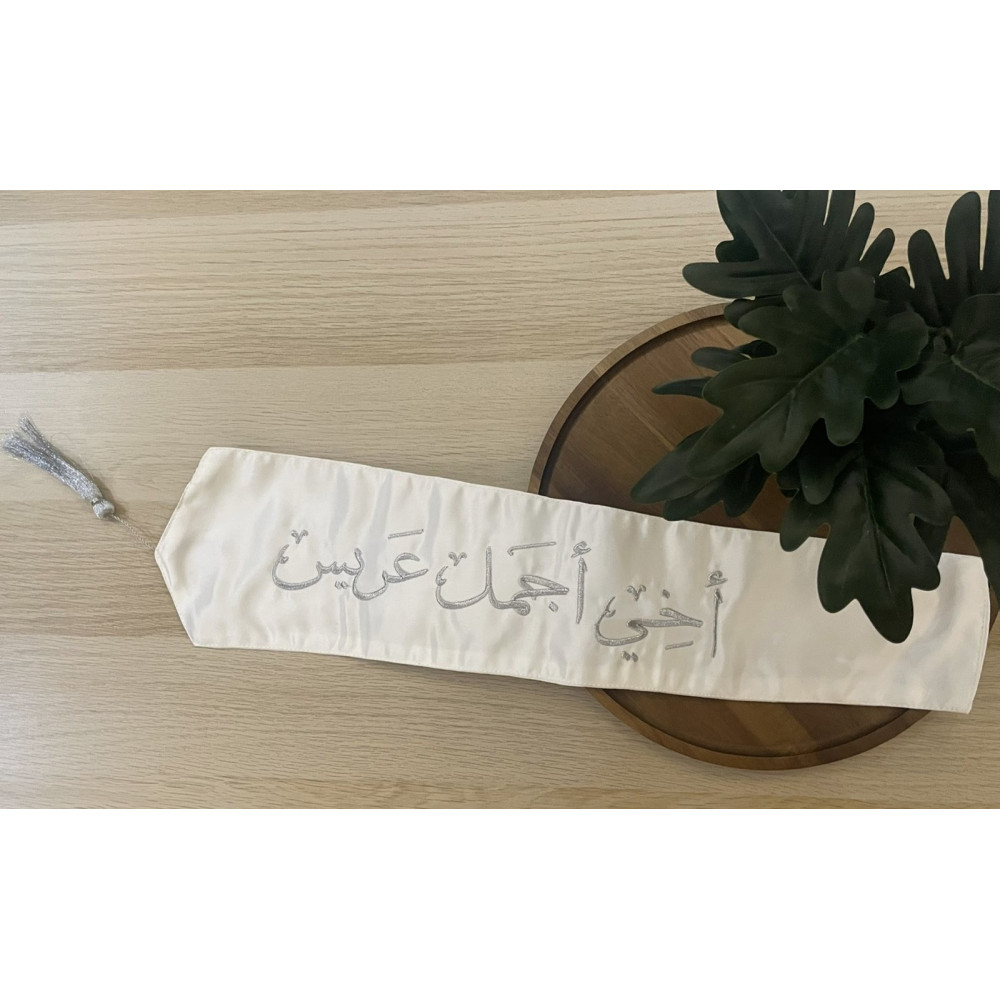 وشاح "أخي أجمل عريس" بتطريز فضي