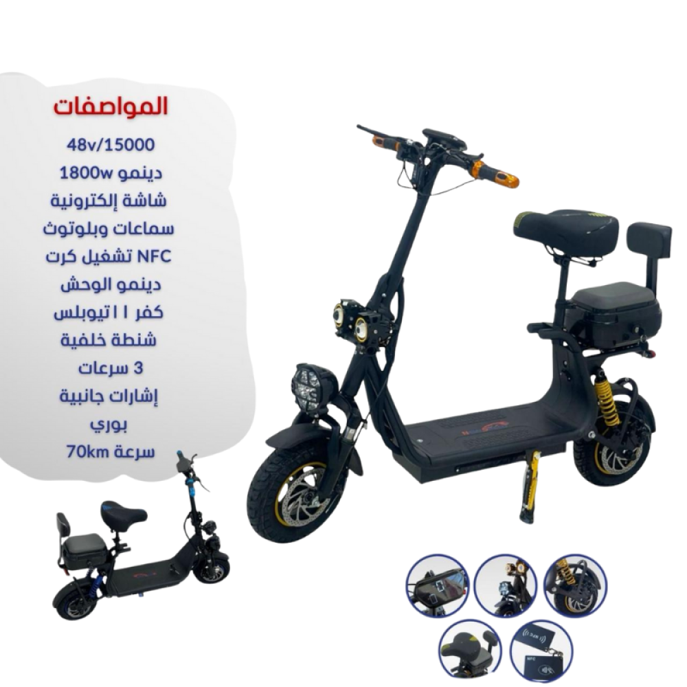 استعد لمغامرات مختلفة مع سكوتر MS111 ، مزود بدينمو قوي 1800w وبطارية 48v/15000ah تعطيك أداء جبار.
