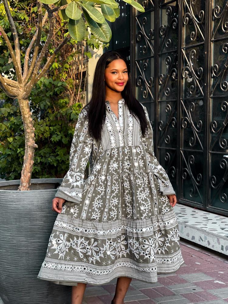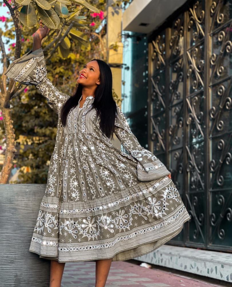 فستان تطريز يدوي مع مرايا
